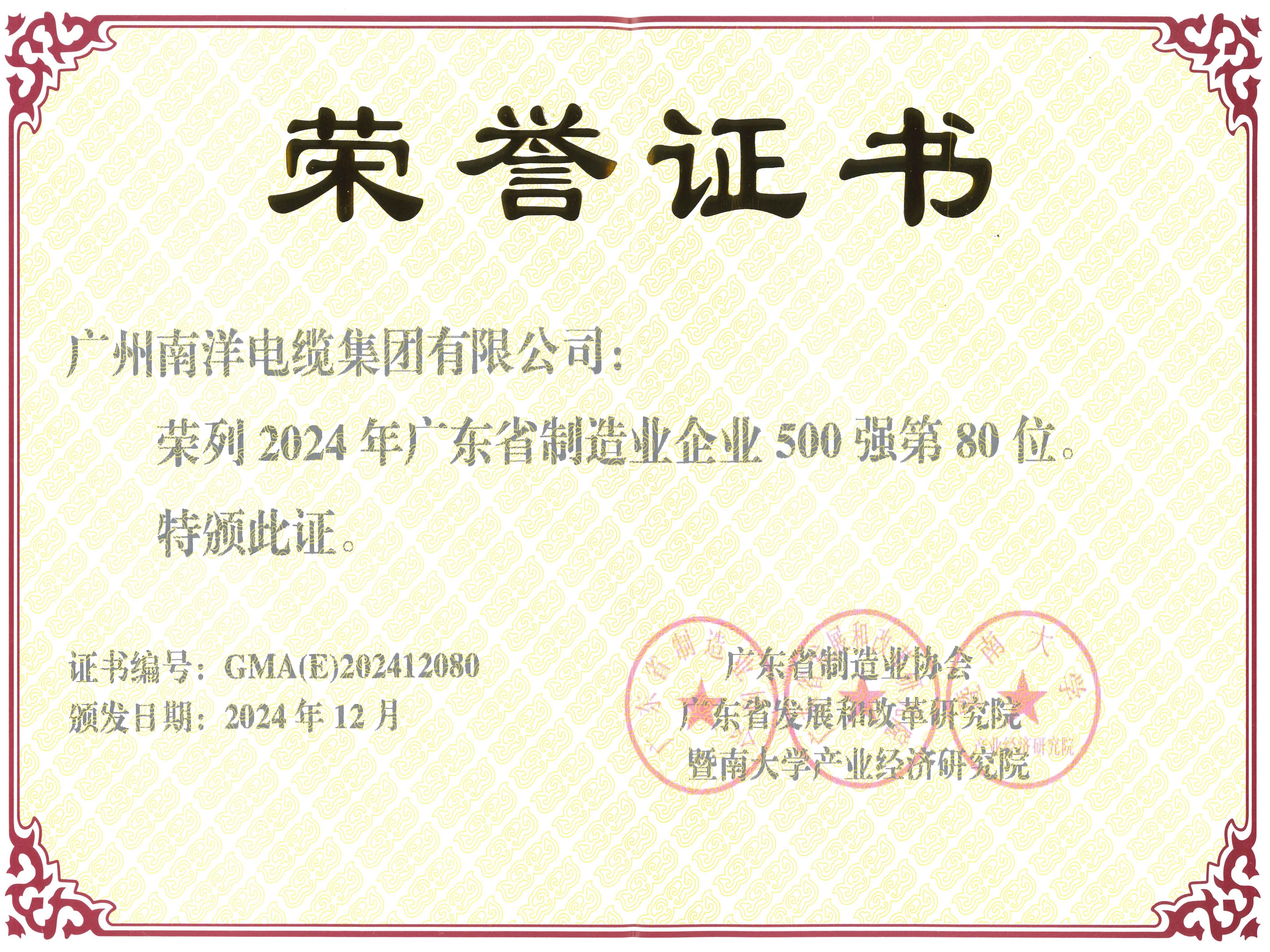 廣東線纜行業(yè)最具競爭力企業(yè)第一名、中國線纜行業(yè)最具競爭力企業(yè)20強、華南地區(qū)電線電纜研發(fā)制造龍頭企業(yè)